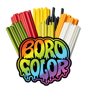 Venda de vidro borossilicato colorido para lampworking e glass art. Cores selecionadas, alta qualidade e envio para todo o Brasil. Borocolor. Cores para Sopradores de Vidro